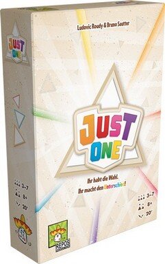Just One ist ein kooperatives Partyspiel, bei dem gemeinsam möglichst viele der 13 geheimen Wörter zu erraten sind. In jeder Runde nimmt ein Spieler eine Karte, stellt sie so in seinen Aufsteller, dass nur die anderen die fünf Begriffe sehen können. Die anderen schreiben dann genau ein Wort auf die Tafel, welches mit dem Begriff in Zusammenhang steht. Gibt es zwei oder mehrere identische Hinweise, sind sie ungültig und der aktive Spieler bekommt sie nicht zu sehen.